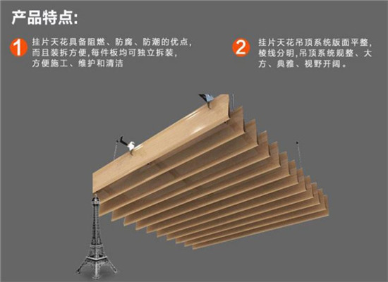 鋁掛片吊頂天花采用單向條板安裝,形成單向屏級(jí)視覺;線條明快飄逸,選用適當(dāng)?shù)母叨,以適當(dāng)視覺角度,能產(chǎn)生幕布效果;其維修限制較少,令設(shè)計(jì)變化萬千、整個(gè)建筑空間寬暢通透。